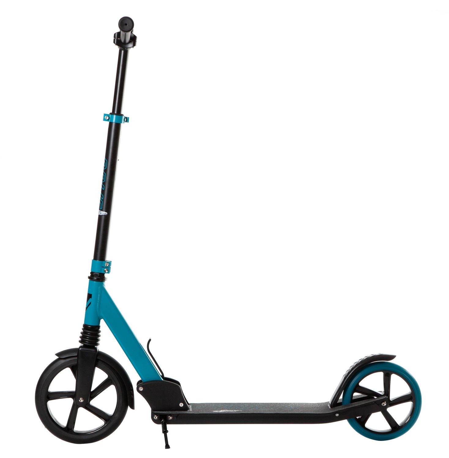 Диаметр переднего колеса составляет 230 мм, заднего — 200 мм. Они выполнены из полиуретана, устойчивого к низким температурам и механическим повреждениям. Торможение осуществляется за счет нажатия ногой на заднее крыло. Предусмотрена регулировка руля по высоте. Класс подшипников — ABEC-7.