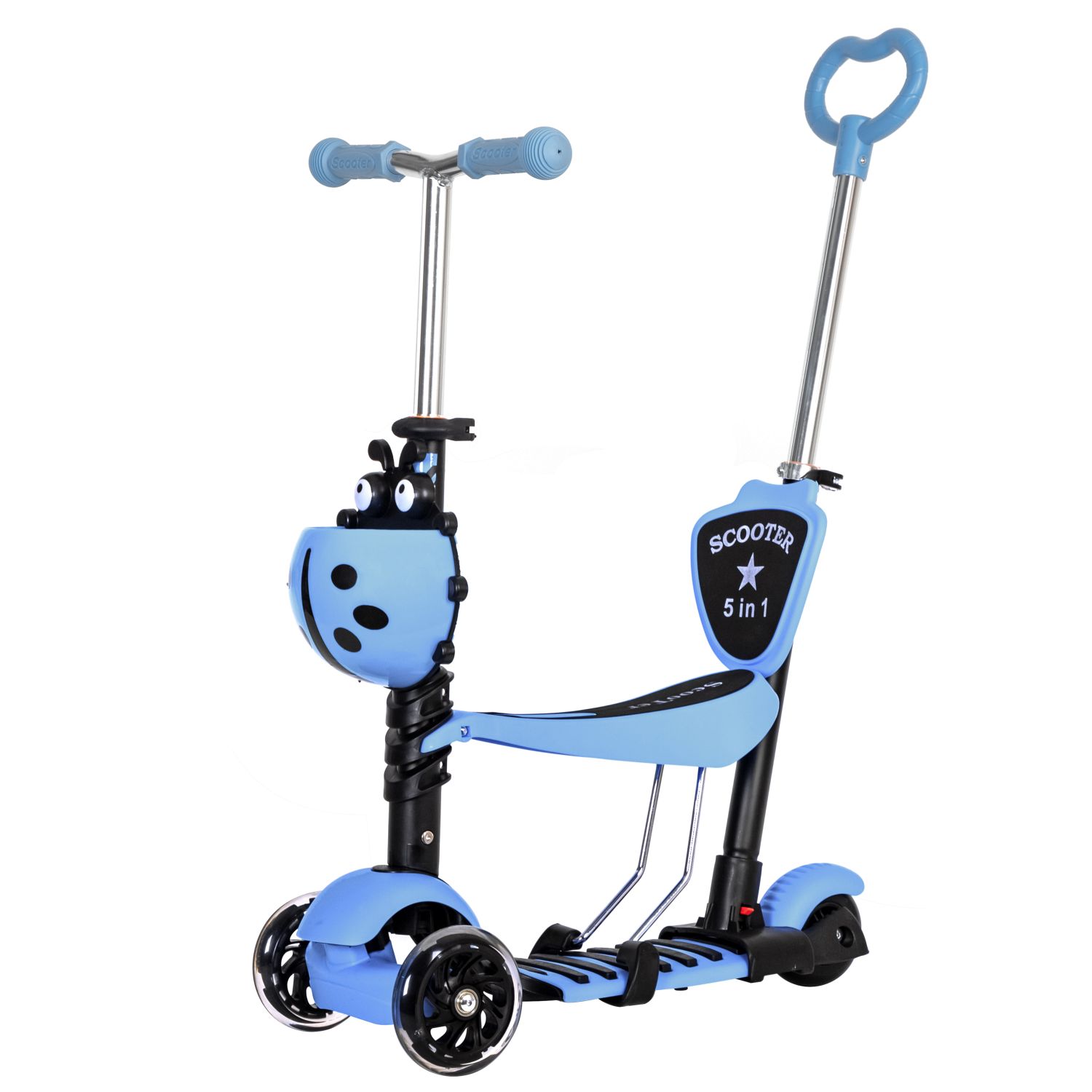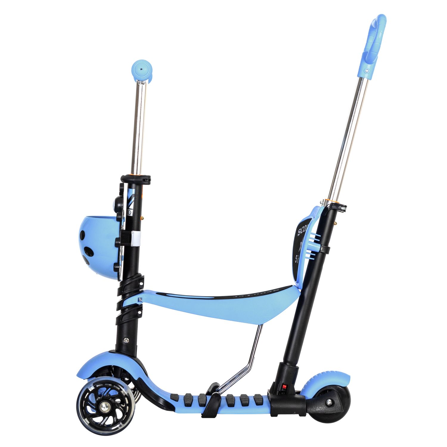 Novatrack Disco-kids 120SB 2019 самокат-кикборд, который в очередной раз радует нас своей универсальностью. В этой модели пожалуй есть всё для удобного катания вашего малыша. Самокат уже оборудован корзинкой спереди, удобным сиденьем и контролирующей ручкой для родителя. Главная особенность в том,что это всё быстро и легко демонтируется, когда ваш ребёнок подрастёт и у вас получается классический самокат-кикборд. Мигающие передние колеса будут доставлять только радость малышу.