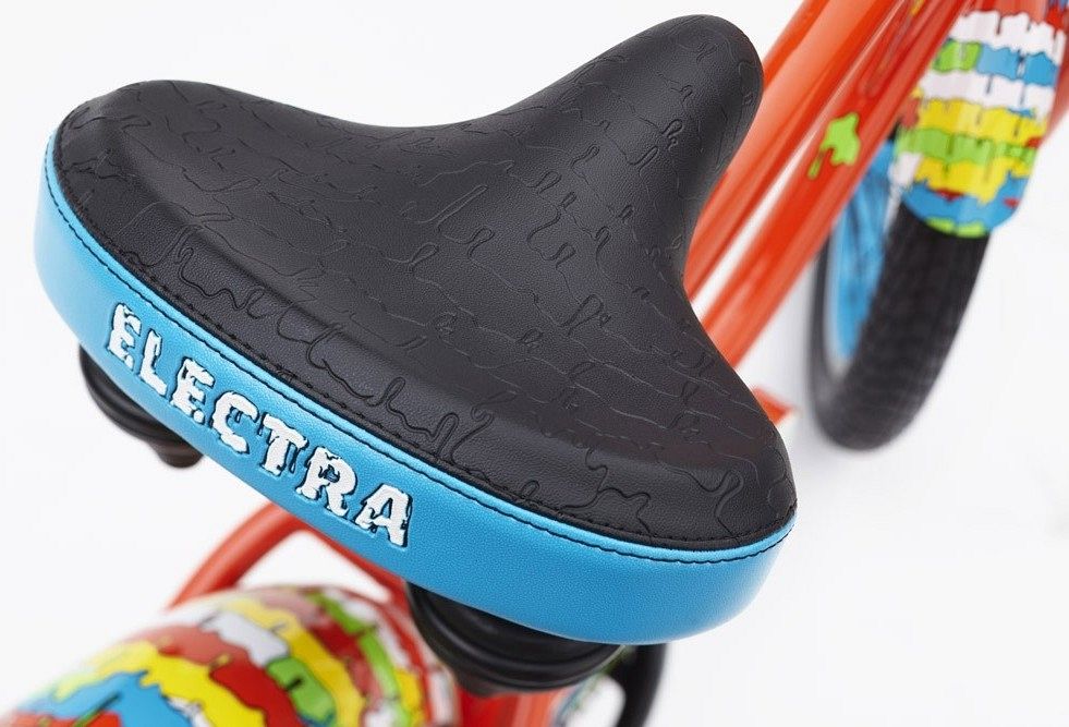 Обода из окрашенного сплава с обработанными боковинами и покрышки размером 16"x2.15" с защитой от проколов Kevlar Guard отвечают за отличное сцепление с дорогой и плавный ход. Руль Electra Kids Cruiser Bar и кастомные грипсы создают комфортные условия для управления, а седло Electra Kids Comfort с эластомерными пружинами обеспечивает удобство даже при длительных поездках.