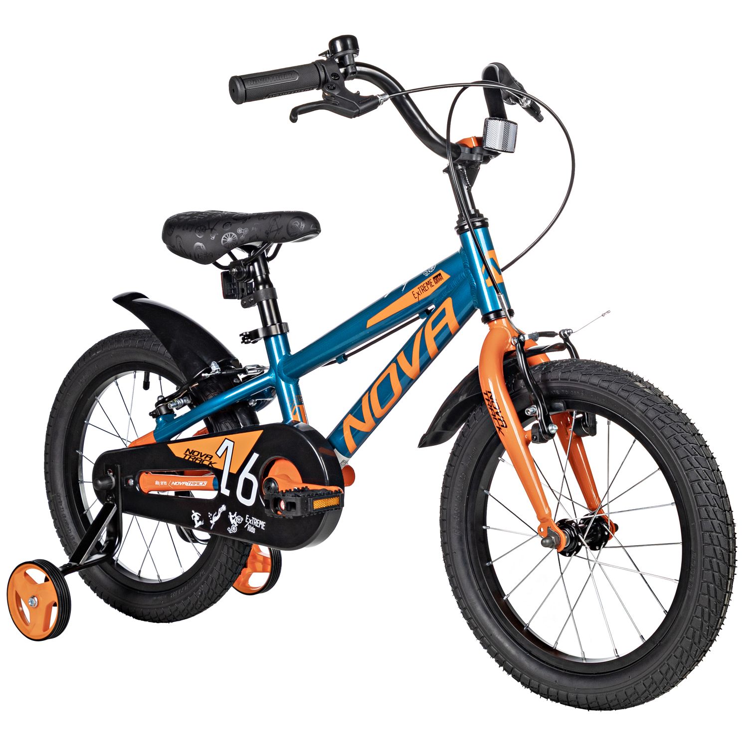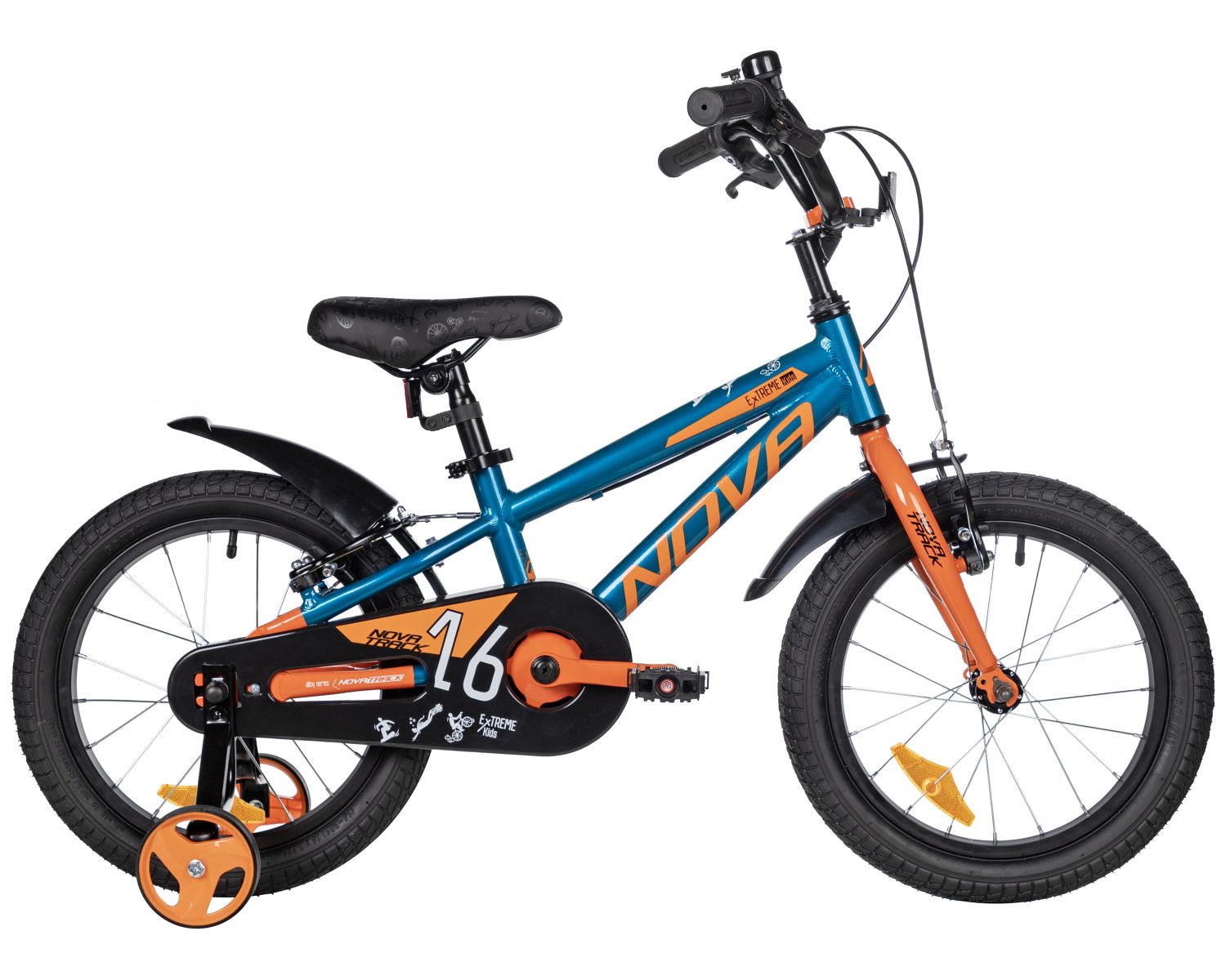 Велосипед Novatrack Extreme V 16 также оснащён дополнительными боковыми колёсами, которые придают устойчивость и помогают детям уверенно держаться на дороге. Полная защита цепи предотвращает попадание одежды и обуви в механизмы, а грязезащитные крылья защищают от брызг и грязи, что делает каждую поездку более приятной и чистой.