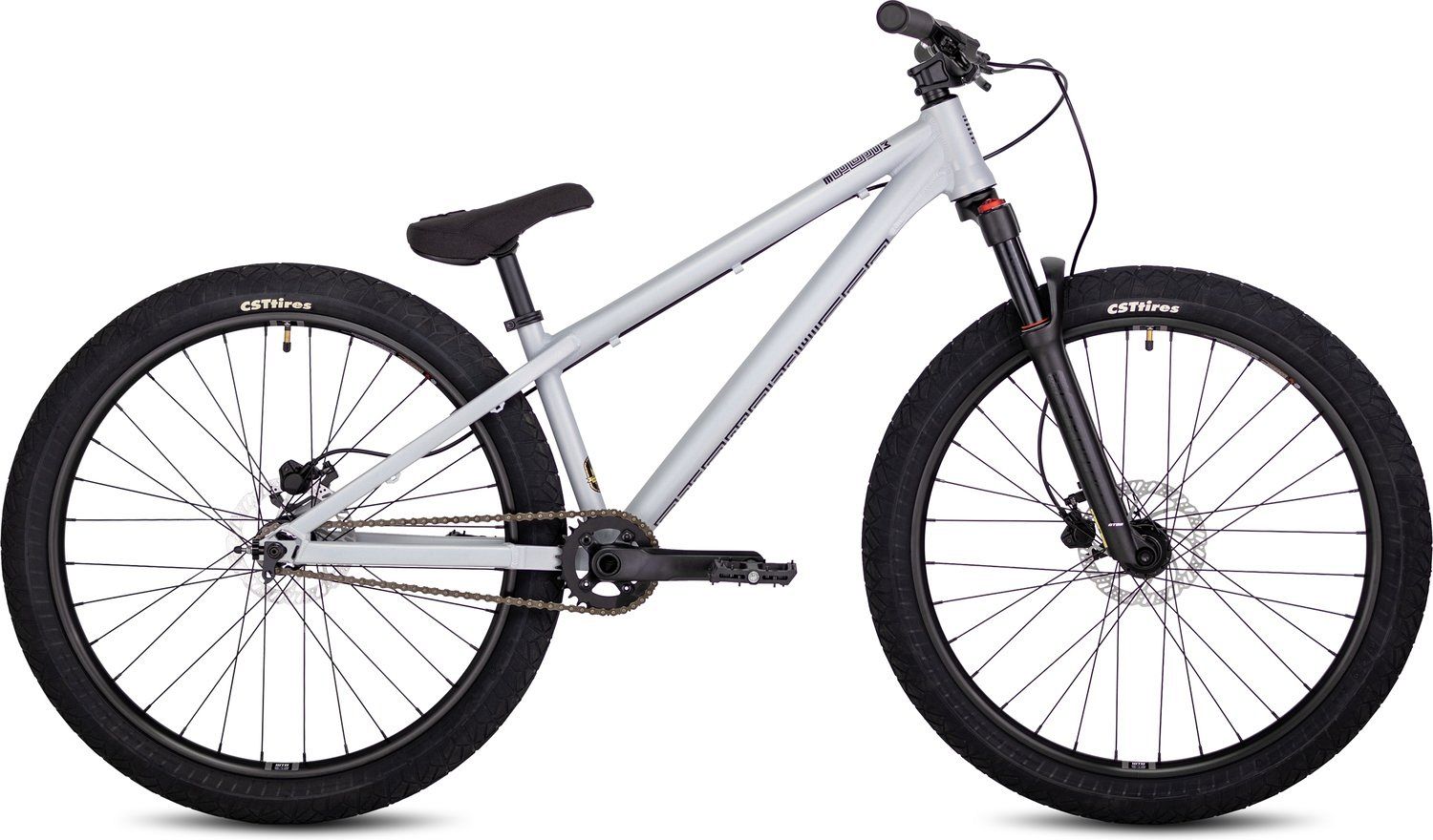 Втулки Atom Bombshell PRO-B Disc с герметичными подшипниками и ободами WTB SX25 26" с двойными стенками добавляют прочности и долговечности колёсам. Широкие покрышки CST Freestyle 26 x 2.4" создают отличное сцепление и стабильность, позволяя уверенно маневрировать на любых поверхностях.