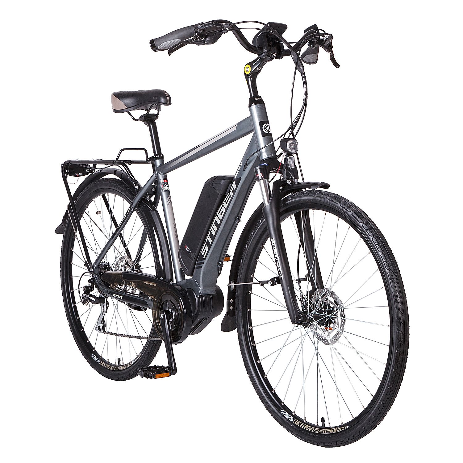 Электровелосипед Stinger 28" Gent (2017), рама 20" (175-185 см), серый