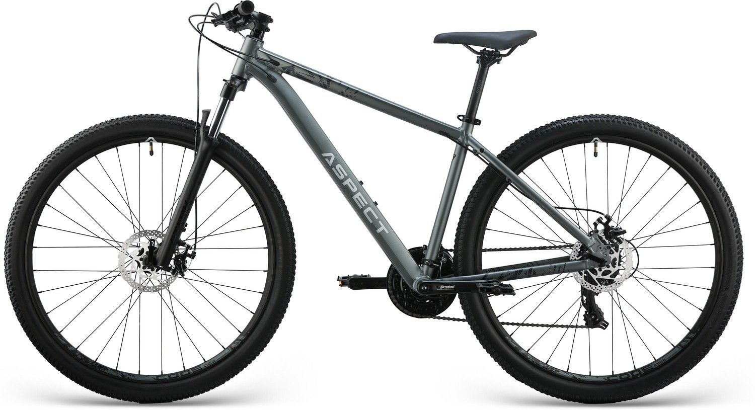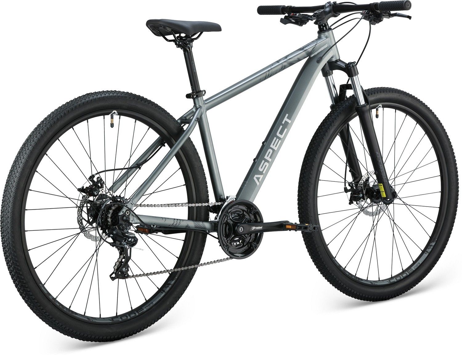 С диаметром колёс 29 дюймов, Aspect Radium 3X обладает отличной проходимостью и стабильностью на любых типах местности. Пружинно-эластомерная вилка GTMRK 330 с ходом 100 мм смягчает неровности дороги, позволяя вам уверенно преодолевать как городские улицы, так и лесные тропы.