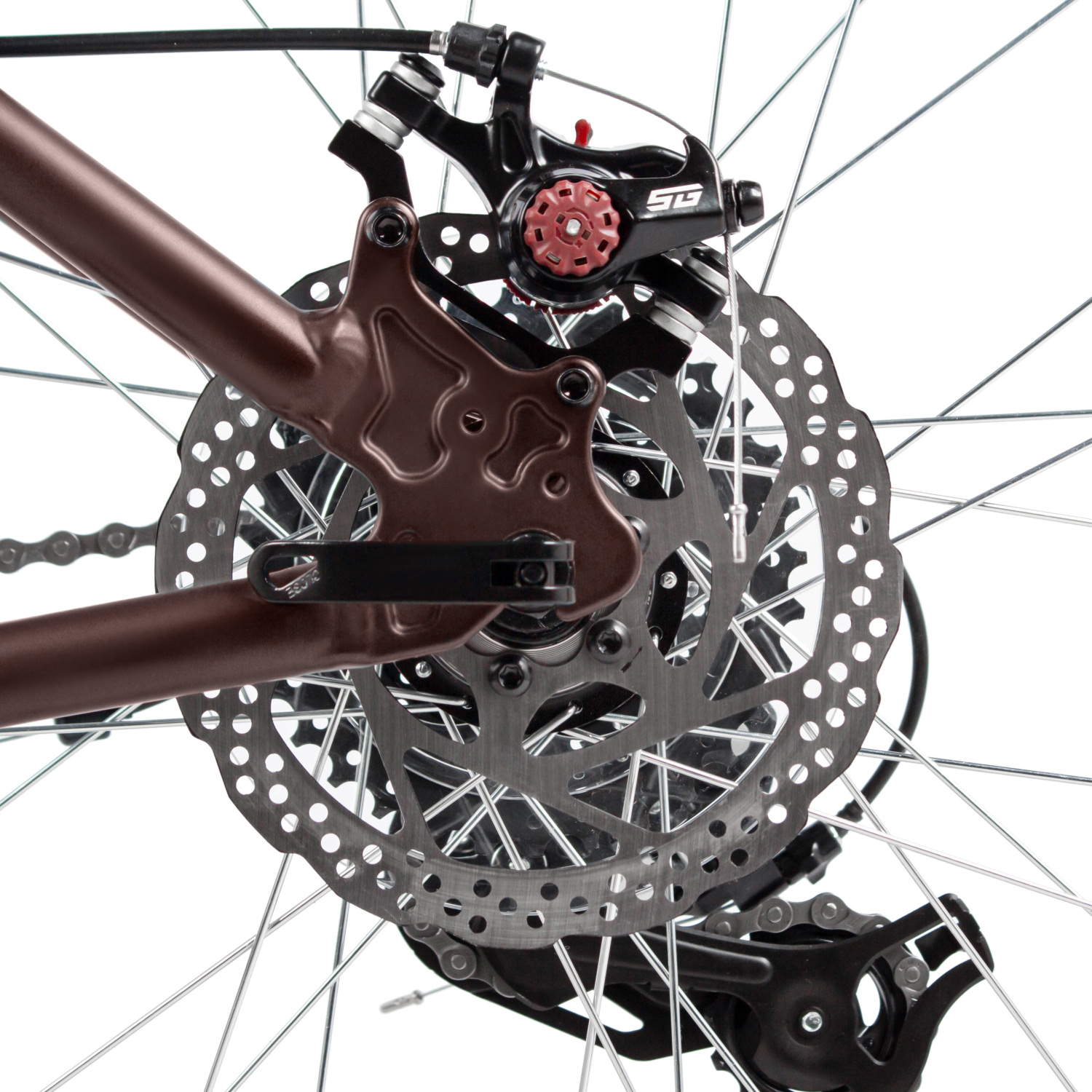 Дисковые механические тормоза STG с роторами 160 мм демонстрируют надёжную остановку в любых ситуациях, что особенно важно для уверенного катания. Дисковые втулки на эксцентриках и покрышки ZX Sporter 2.0 гарантируют отличное сцепление и долговечность.
