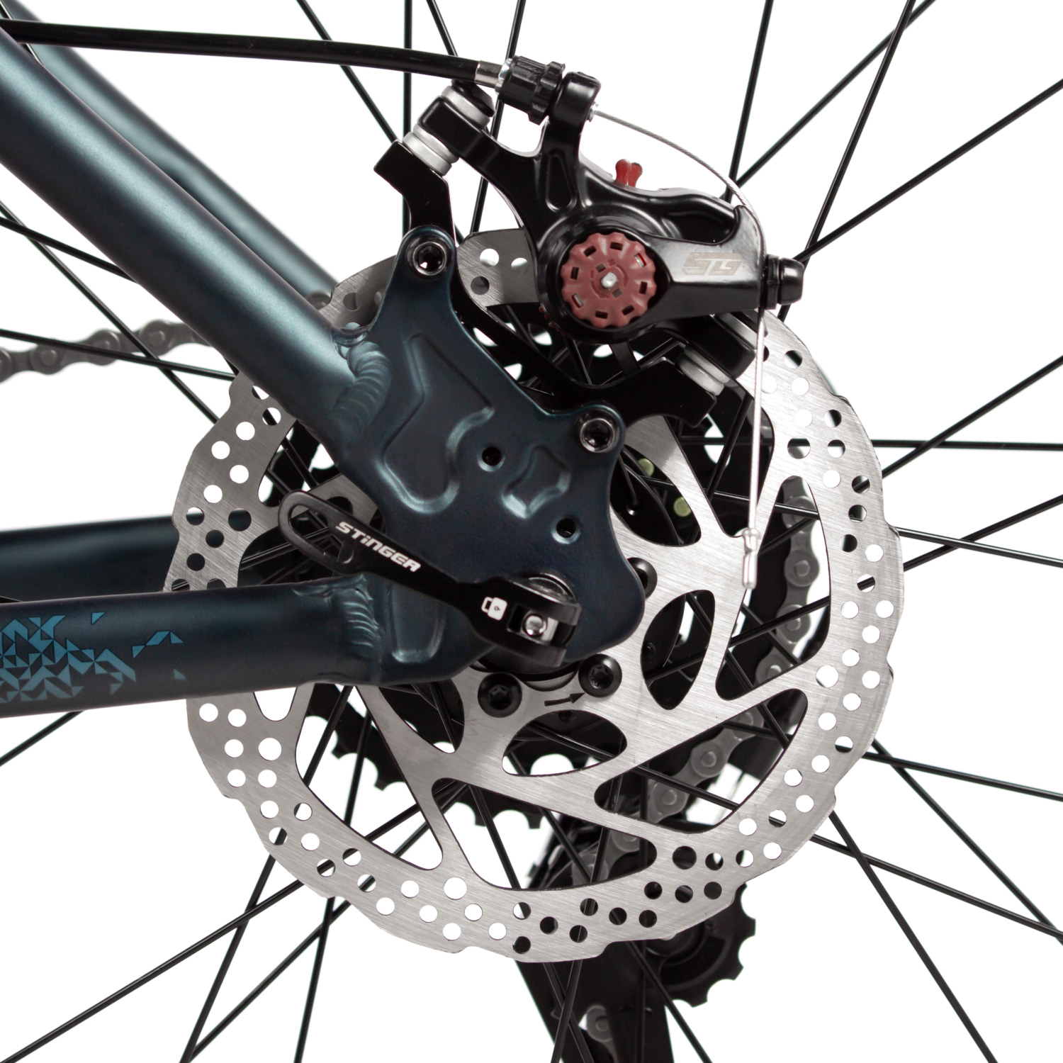 – Пружинная вилка STG Spice с ходом 110 мм для хорошей амортизации.