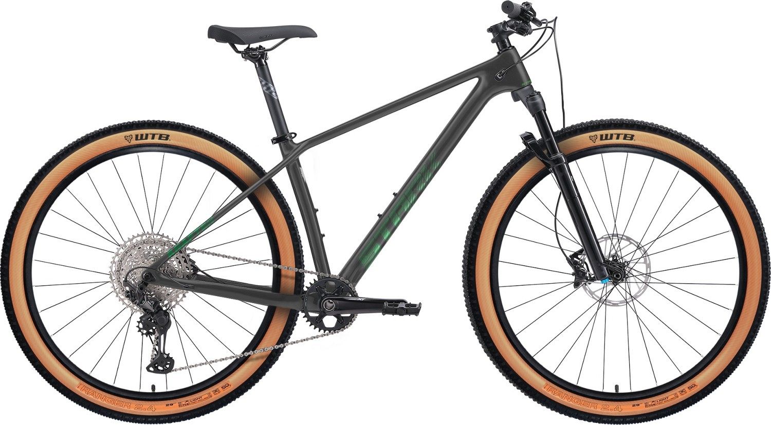 Покрышки WTB Ranger шириной 2,25 дюйма гарантируют отличное сцепление с поверхностью, что способствует уверенности на сложных участках трассы. Дисковые гидравлические тормоза Shimano XT M8100 с роторами 180/160 мм обеспечивают мощное и контролируемое торможение, позволяя райдеру легко управлять скоростью и остановкой.