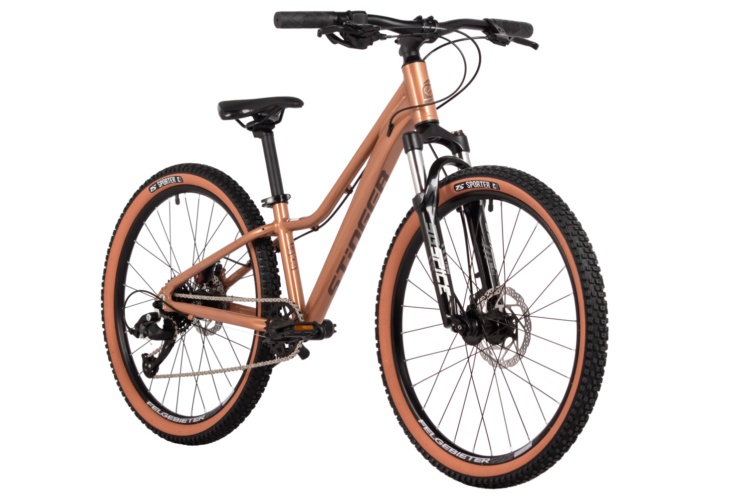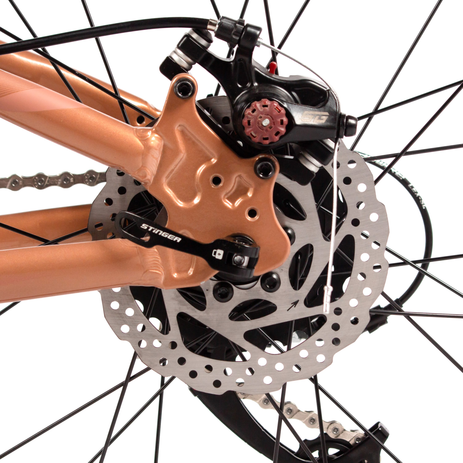 – Пружинная вилка STG Spice с ходом 110 мм для комфортного катания по неровным поверхностям.