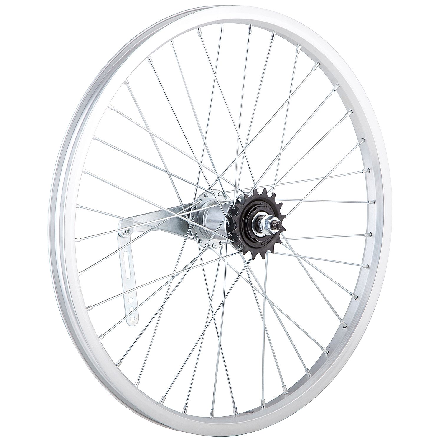 Колесо 20" заднее в сборе(без резины) с одинарным алюминиевым ободом на 36 спиц со втулкой под гайку.