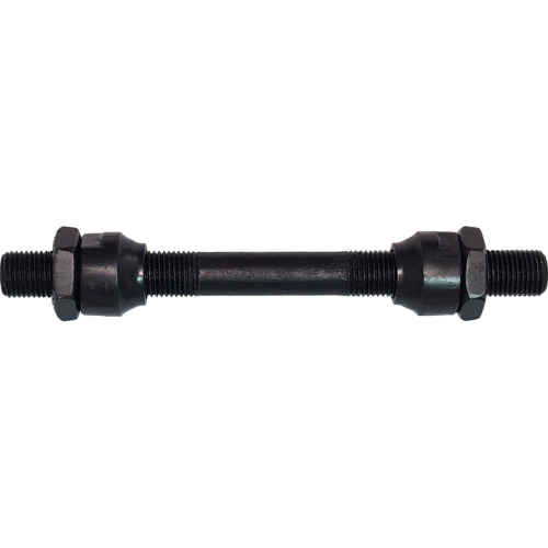Ось передней втулки предназначена для крепления колеса к вилке велосипеда. Имеет диаметр 3/8 дюйма и длину 108 мм. Полая конструкция из высококачественной стали обеспечивает лёгкость и прочность. В комплект входят конусы и контр гайки для надежной фиксации и регулировки натяжения подшипников. Чёрное покрытие защищает от коррозии и придает стильный вид. Подходит для большинства велосипедов с эксцентриковым креплением.