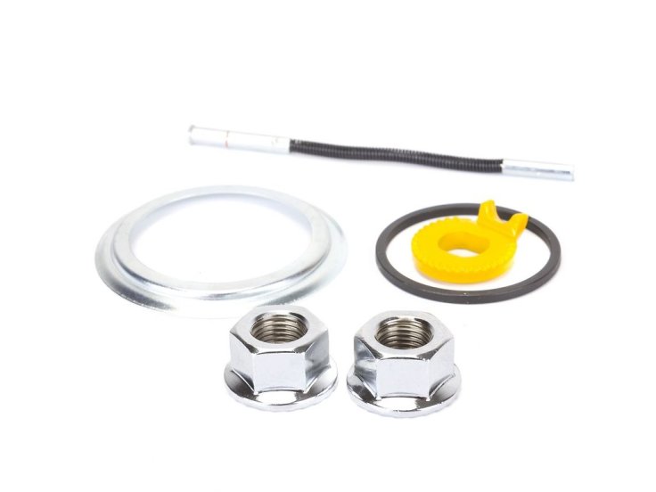 Запчасти к планетарной втулке SG-3C41 (и более ранних моделей), штырек 81.85 мм (для втулок с длиной оси 168мм и 170мм), гайки фланцевые 2 штуки, стопорная шайба, пыльник, стопорное кольцо.