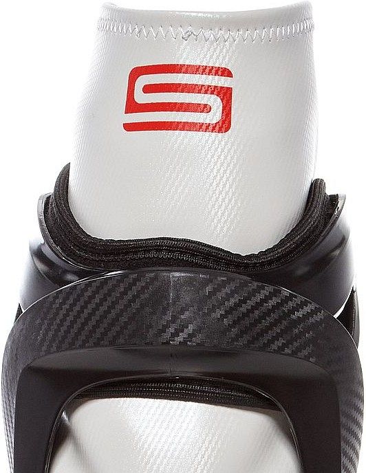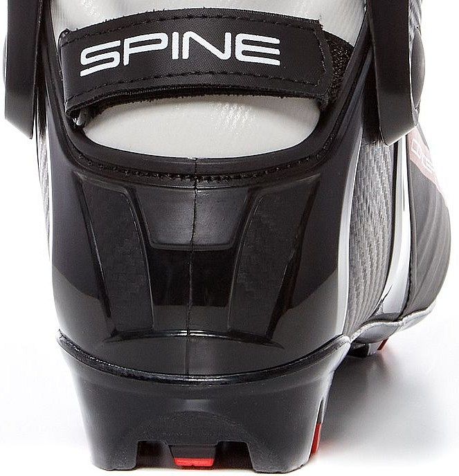 – Жесткая промежуточная стелька (торсионная пластина) исключает скручивание подошвы и улучшает фиксацию ботинка в креплении лыжи, одновременно создает дополнительную реактивную силу при толчке.