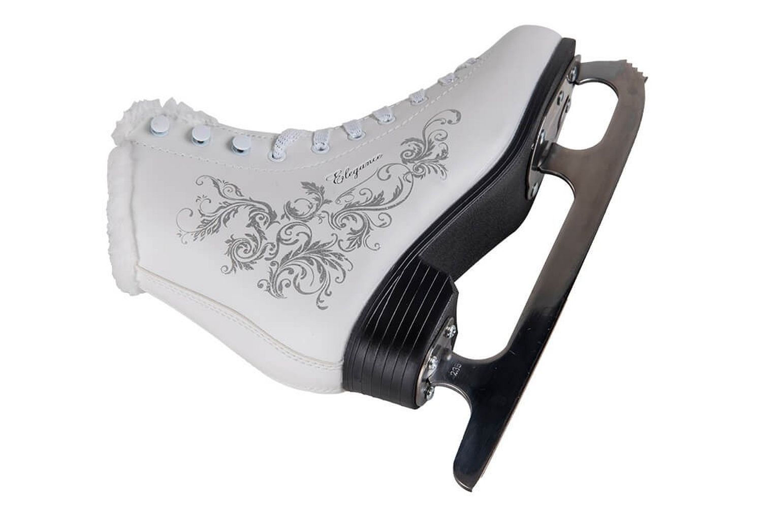 Новая продвинутая модель коньков Elegance от российского бренда Tech Team будет по душе любой девушке. Дизайн коньков с узорами в виде серебра и надписью «Elegance» выделят Вас из большинства! Коньки очень удобно снимать и одевать при наличии одной только шнуровки, вверху установлены специальные крючки. Материал коньков сделан из морозостойкой искусственной кожи. Внутренняя часть состоит из мягкого и теплого меха. Удобный и прочный каблук сделан из полипропилена.