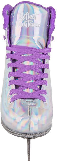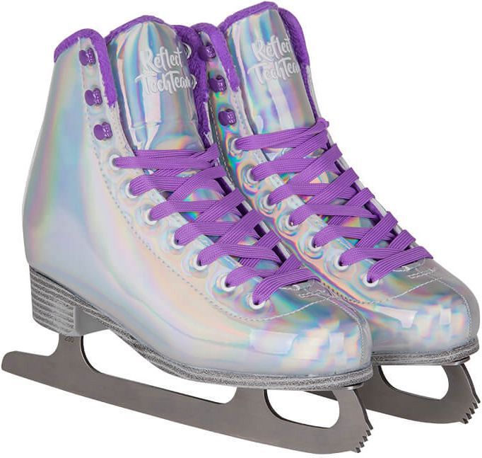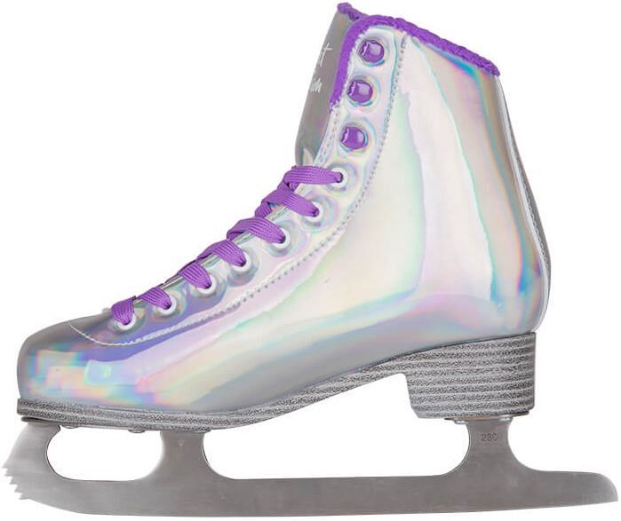 Яркие женские фигурные коньки, в которых вы точно не останетесь незамеченными! Ботинок коньков выполнен из искусственной кожи с галографическим эффектом и переливается разными цветами. Подкладка ботинка изготовлен из синтетического меха.