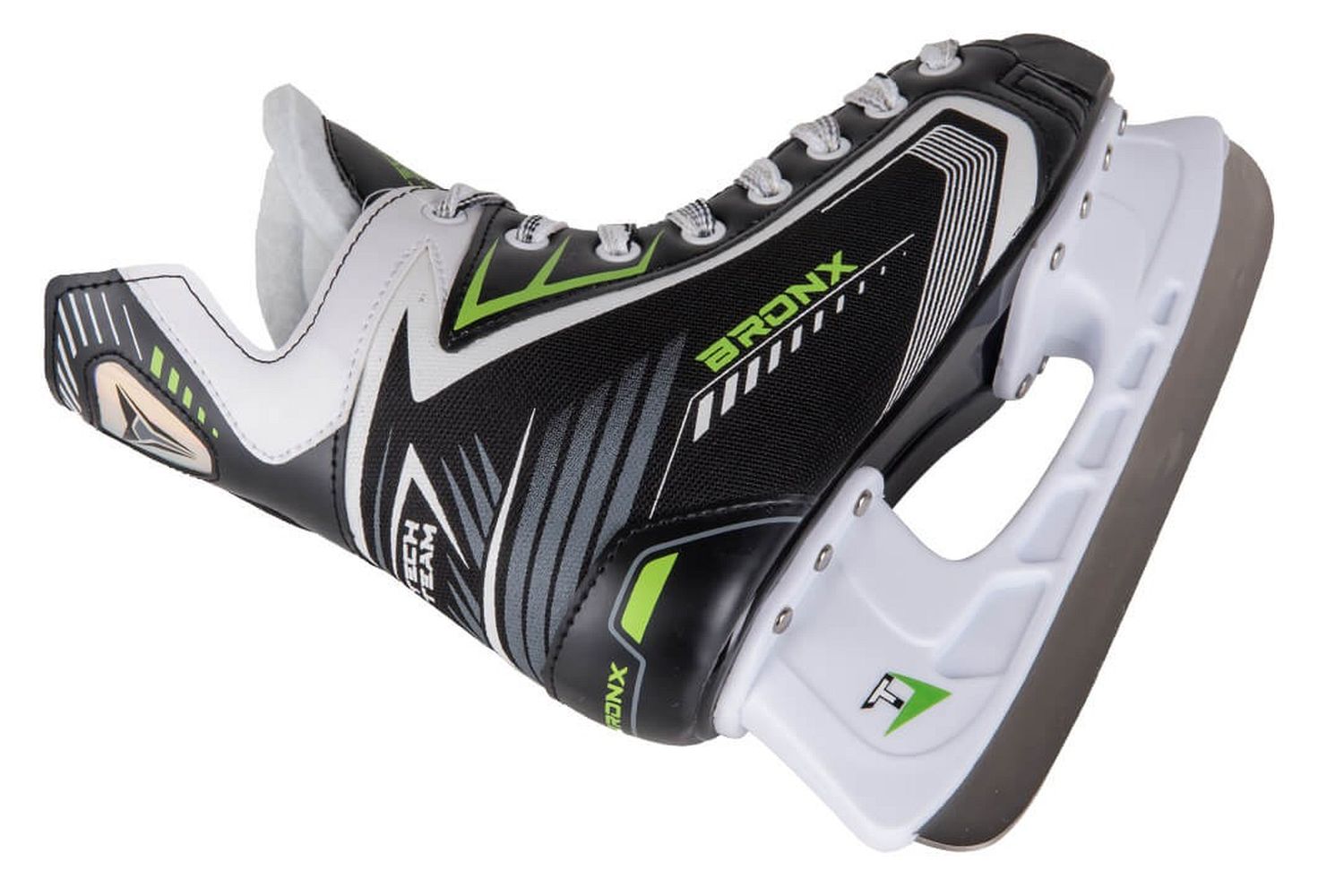 Для игры в хоккей самым главным атрибутом экипировки являются коньки, ведь они должны быть не только удобными и комфортными, но и иметь защитные свойства. Модель Bronx от бренда Tech Team порадует Вас всеми необходимыми качествами. Коньки легки в управлении и обладают достаточной маневренностью. Морозостойкий нейлон и пластик - основной материал коньков. Внутренний ботинок из вельвета поможет сохранить внутреннее тепло и замечательно сохранит теплообмен. Лезвие из нержавеющей стали хорошо поддается заточке. Кончик конька из ударопрочного пластика защитит от неожиданных попаданий шайбы.