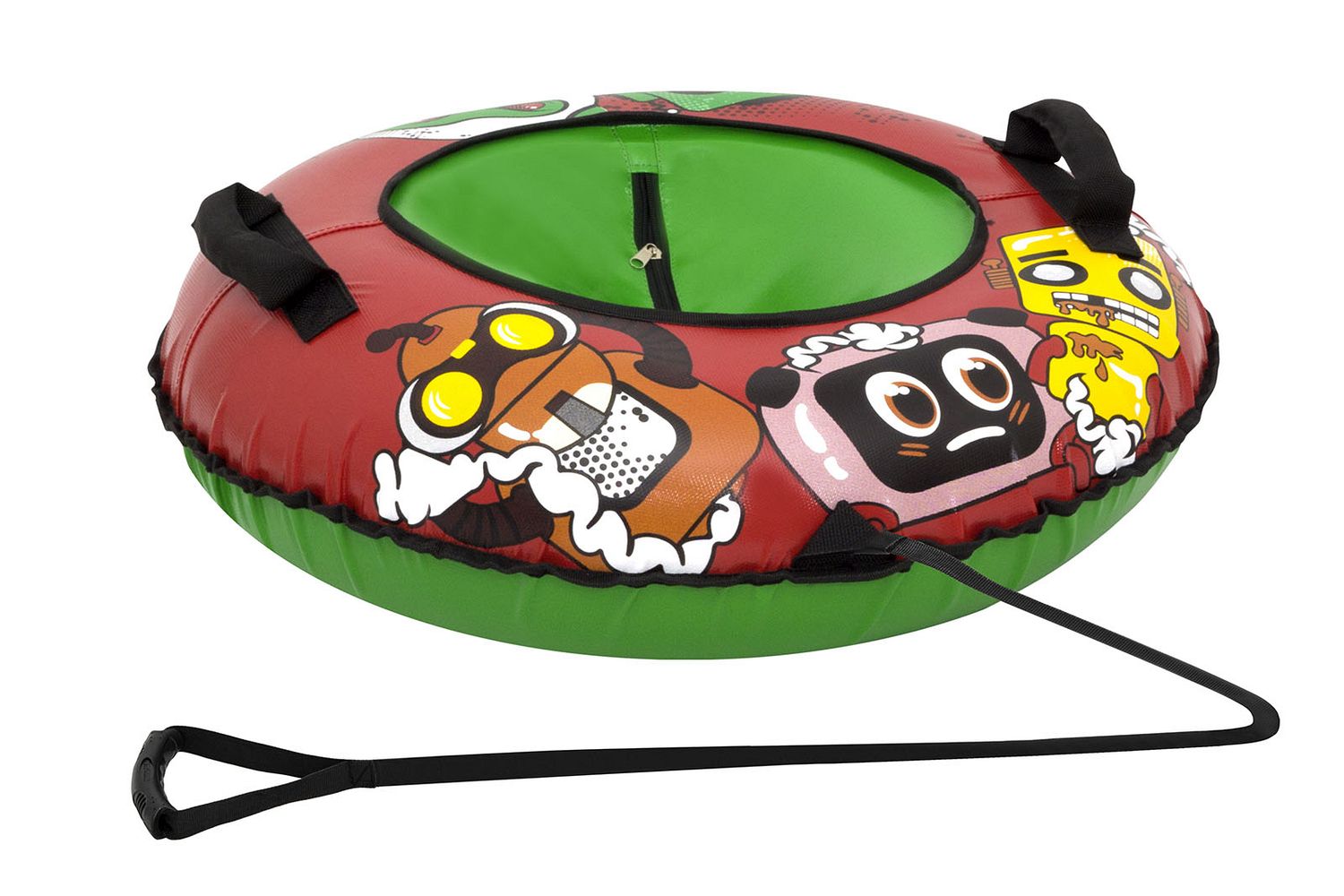Для удобного катания предусмотрены ручки-держатели и буксировочный трос из усиленной стропы.