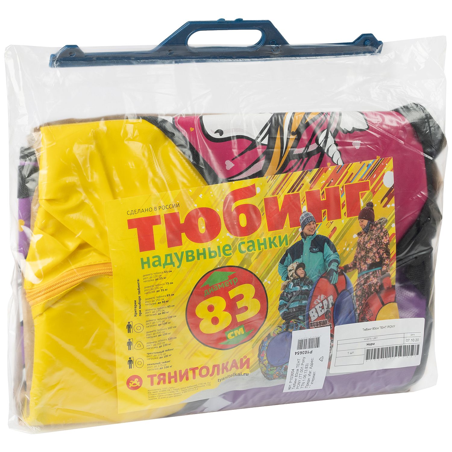 Какой же ребенок не хочет зимой мчаться с горки? Детские тюбинги – прекрасная альтернатива санкам и одно из главных зимних развлечений, возможность весело и активно провести время, а также удобное транспортное средство, позволяющее родителям ускорить передвижение по улицам. Это и отличный способ семейного отдыха: прокатиться с горы не откажутся даже взрослые. юбинги-ватрушки от компании "Тяни-Толкай" отличаются огромным разнообразием ярких принтов и форм. Легкие и удобные тюбинги придутся по душе любому малышу. Тюбинг устойчив к морозам до -25 градусов. Верх и дно тюбинга выполнено из армированного ПВХ материала высокого скольжения плотностью 630 гр/м. Швы прошиты плотной лавсановой нитью. Все швы и посадочное место усилены прочной ременной стропой.
